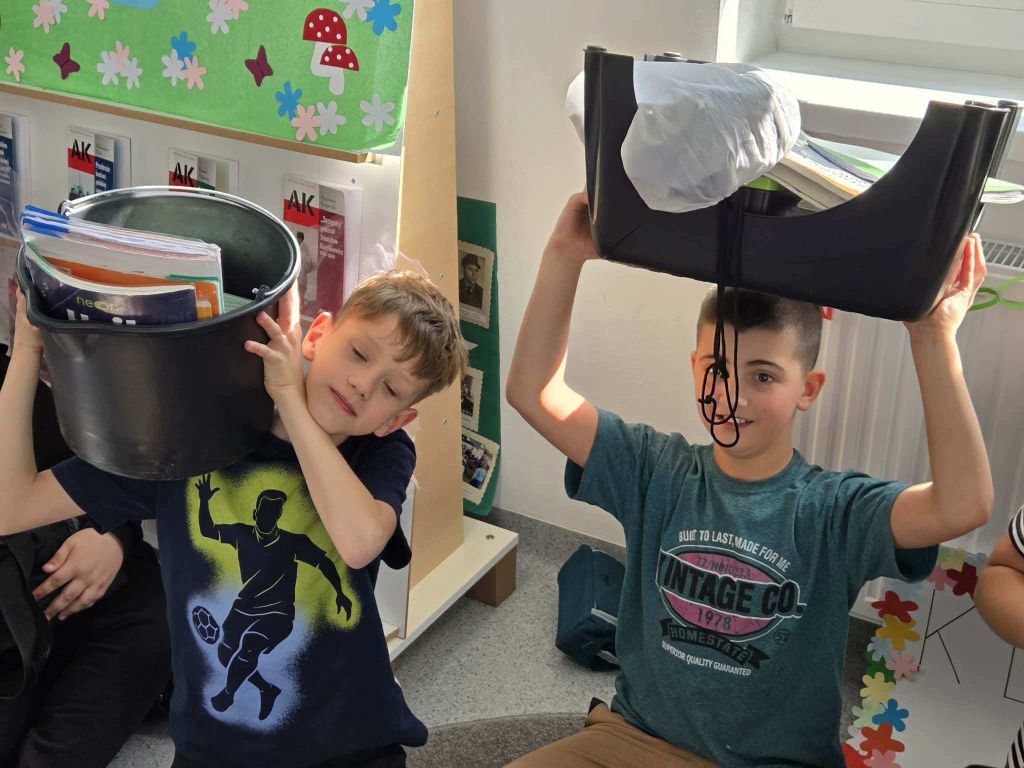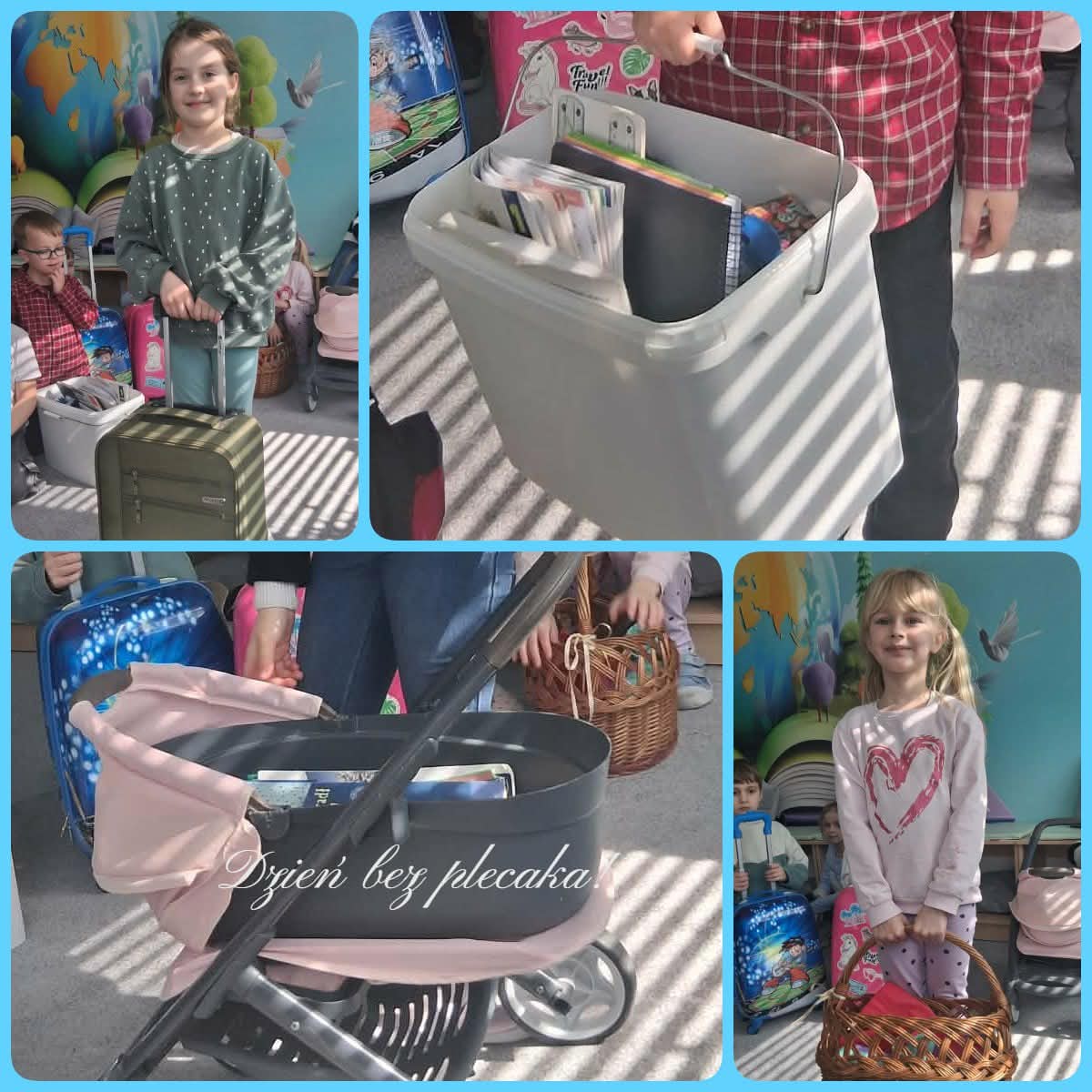 Dziś w naszej Szkole było naprawdę wyjątkowo - obchodziliśmy Dzień Bez Plecaka! Zamiast tradycyjnych plecaków pojawiły się wózki, walizki, wiaderka, a nawet jeszcze bardziej kreatywne „nośniki” na książki i zeszyty. Uczniowie wykazali się ogromną pomysłowością i poczuciem humoru.
