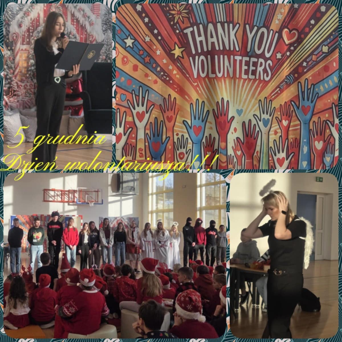 05 grudnia 2025 roku w naszej szkole świętowaliśmy Dzień Wolontariusza. Z tej okazji szkolni Wolontariusze przygotowali krótką scenkę z udziałem diabła i aniołka, aby w ciekawy sposób przypomnieć, że pomaganie ma ogromną wartość i jest… po prostu fajne!