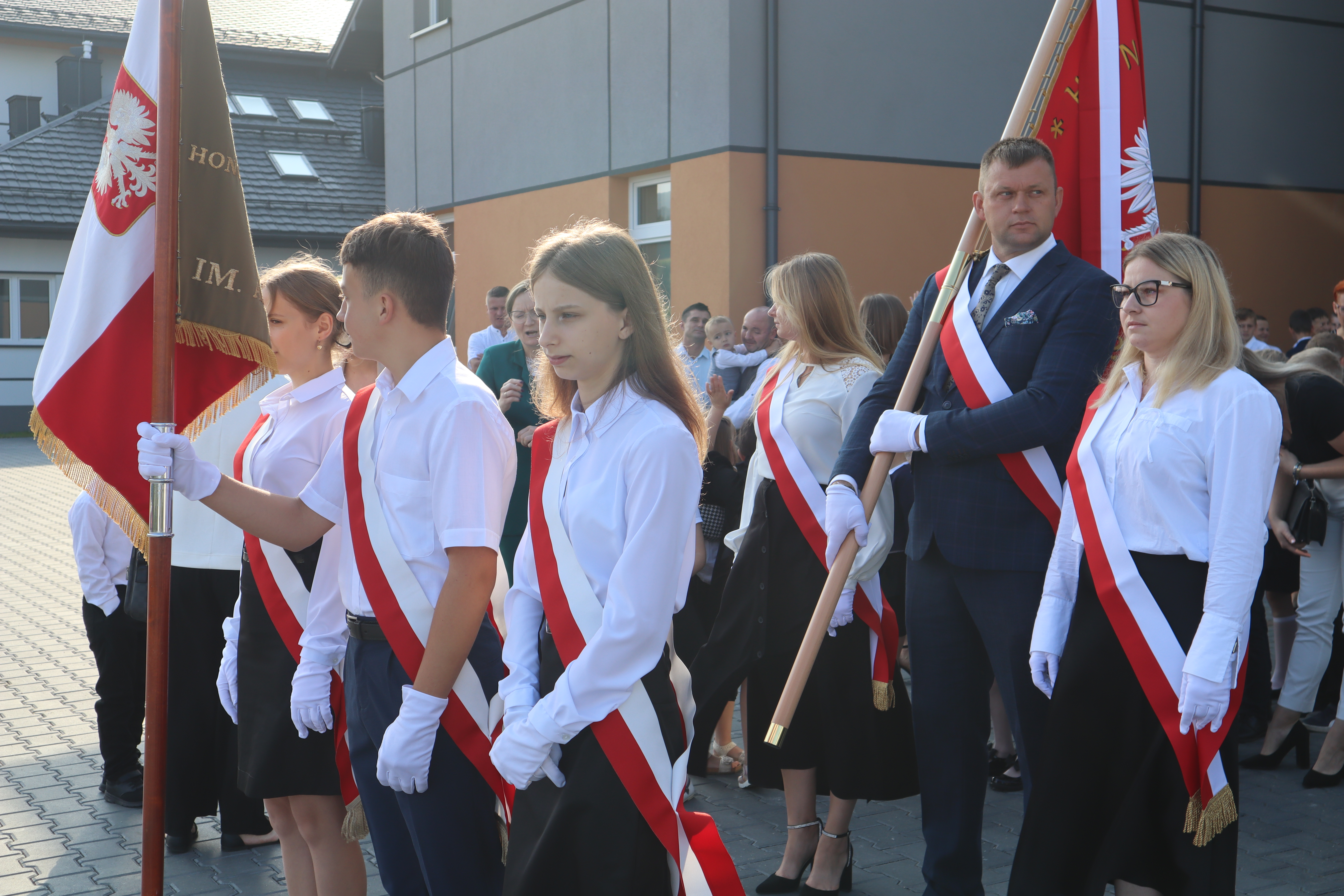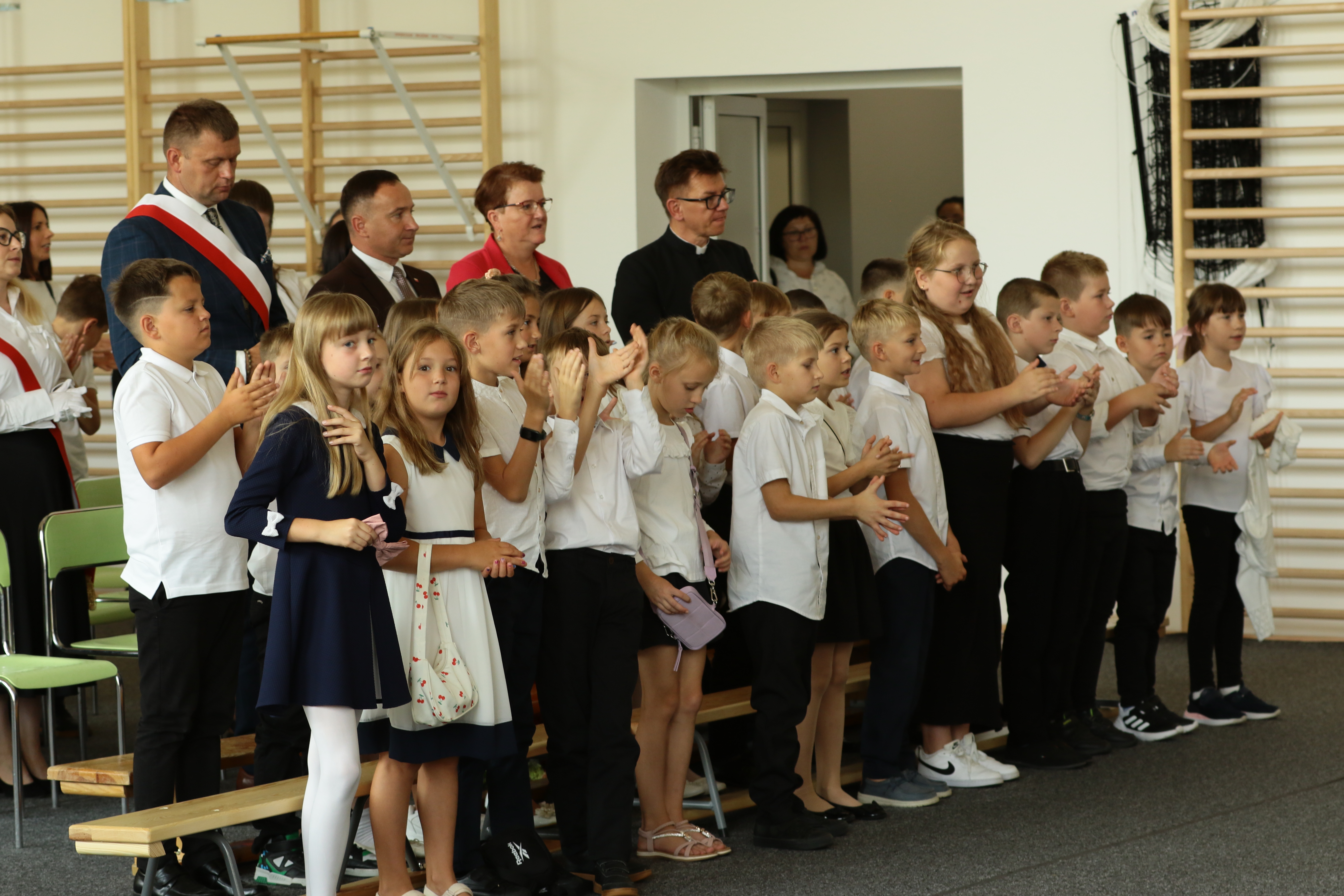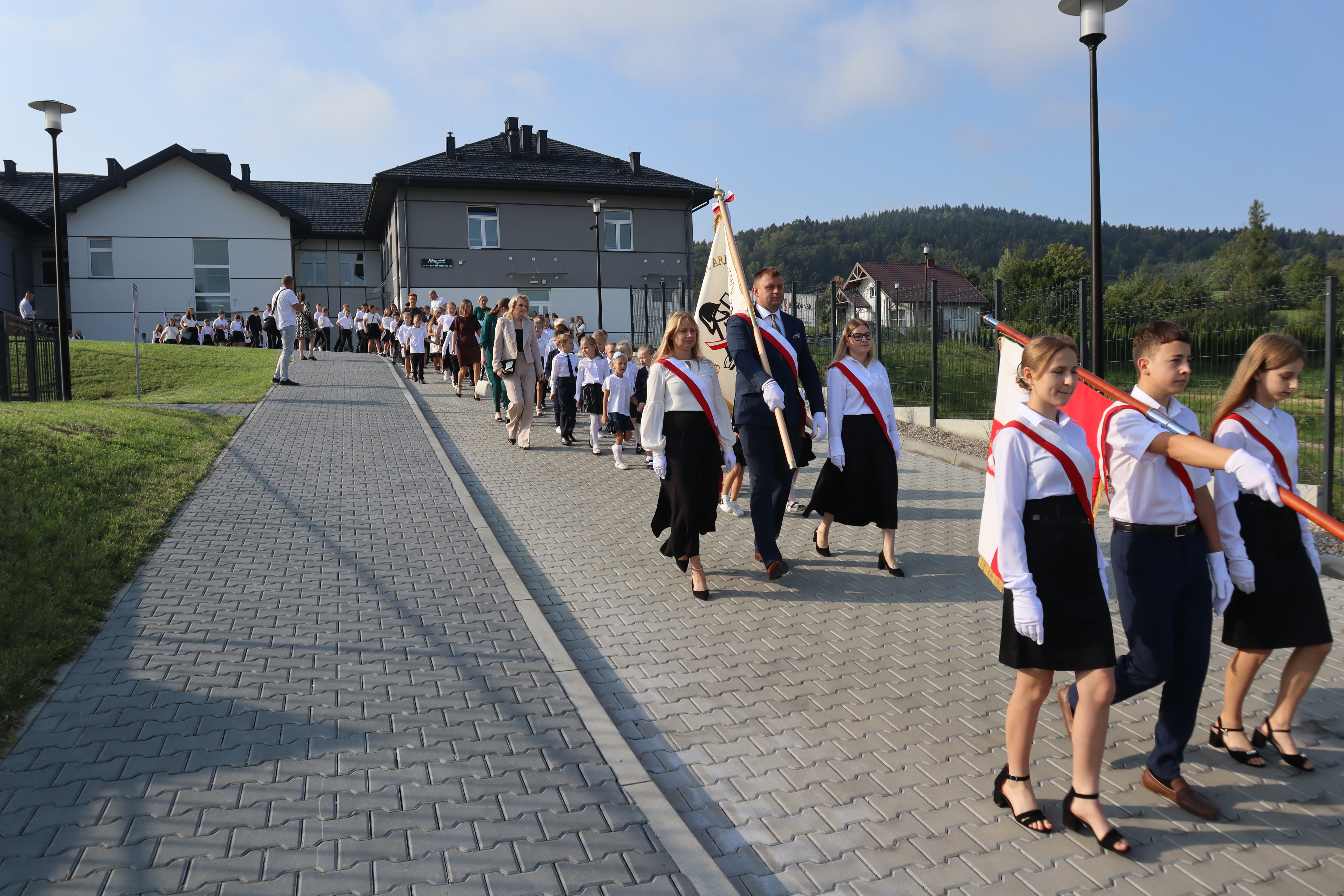 Szczególne podziękowania kierujemy w stronę Wójta Gminy Grybów Pana Jacka Migacza oraz Pani Sołtys Józefy Krok, którzy byli dzisiaj razem z nami w tym historycznym momencie. Wyrazy wdzięczności składamy również Pani Dyrektor Szkoły, Nauczycielom, Pracownikom administracji i obsługi, Rodzicom oraz wszystkim, którzy przyczynili się do otwarcia nowego budynku szkoły. Mamy nadzieję, że ten nowy czas, który właśnie się zaczyna, będzie dla Nas wszystkich okresem pełnym inspiracji, sukcesów i niezapomnianych chwil.
