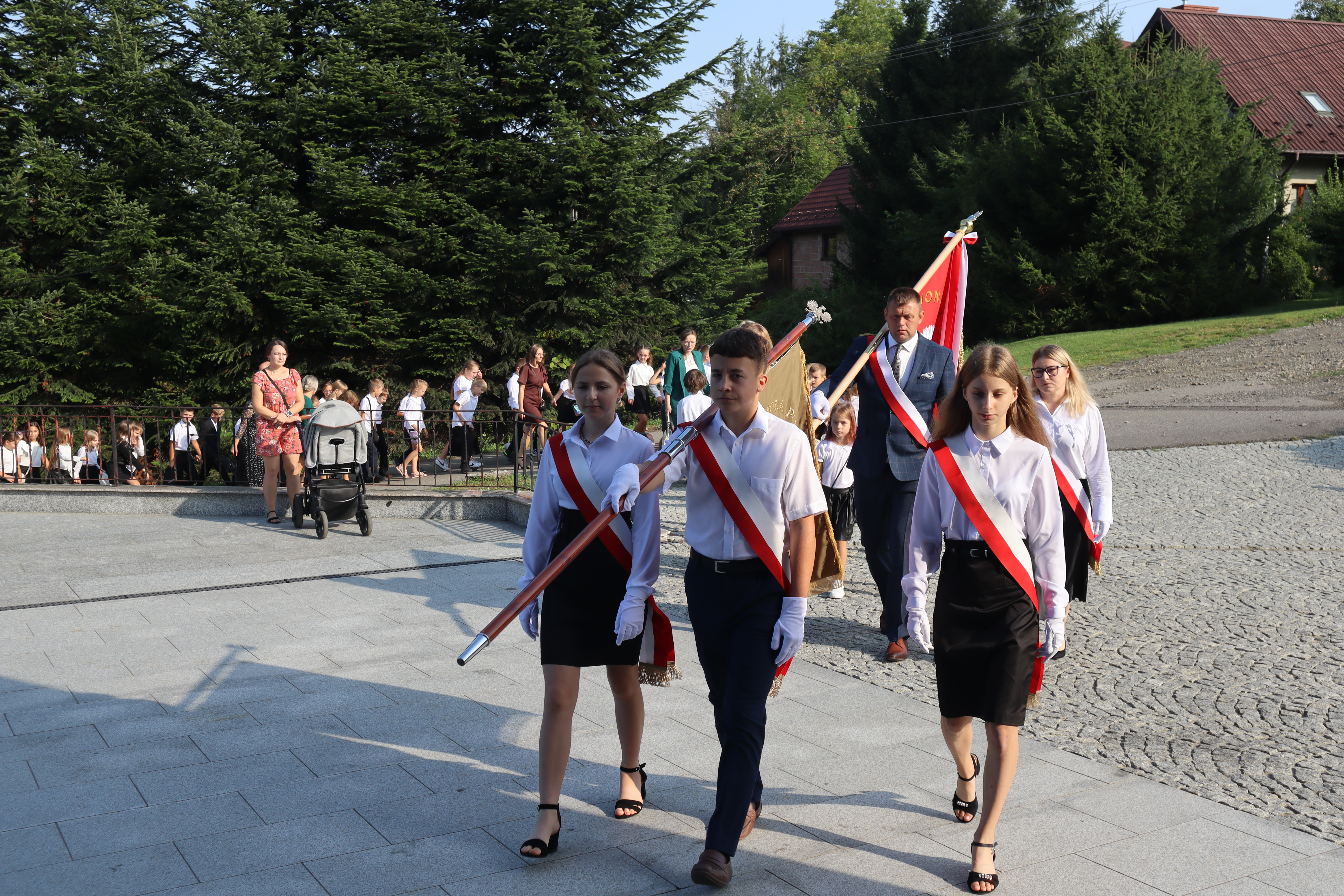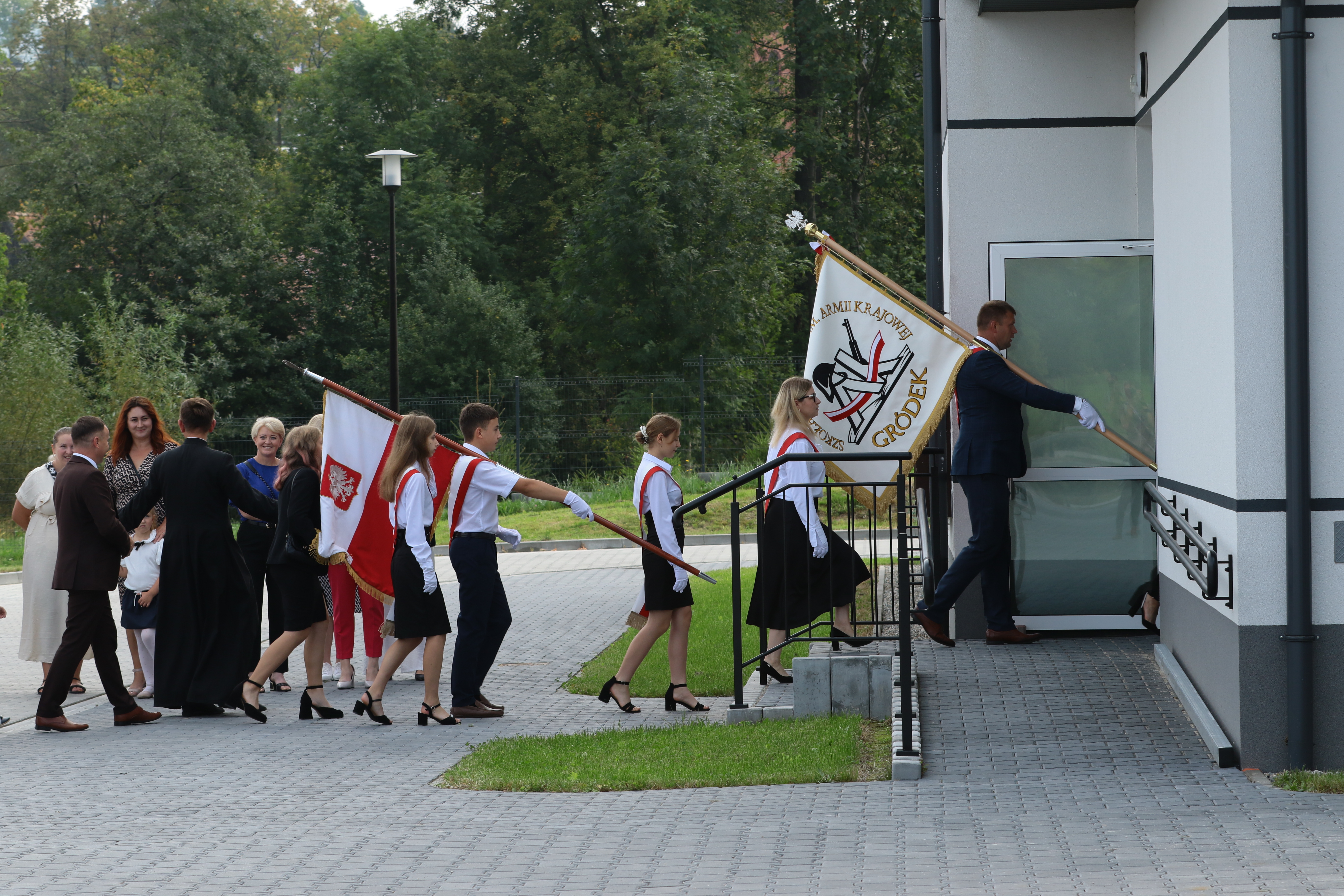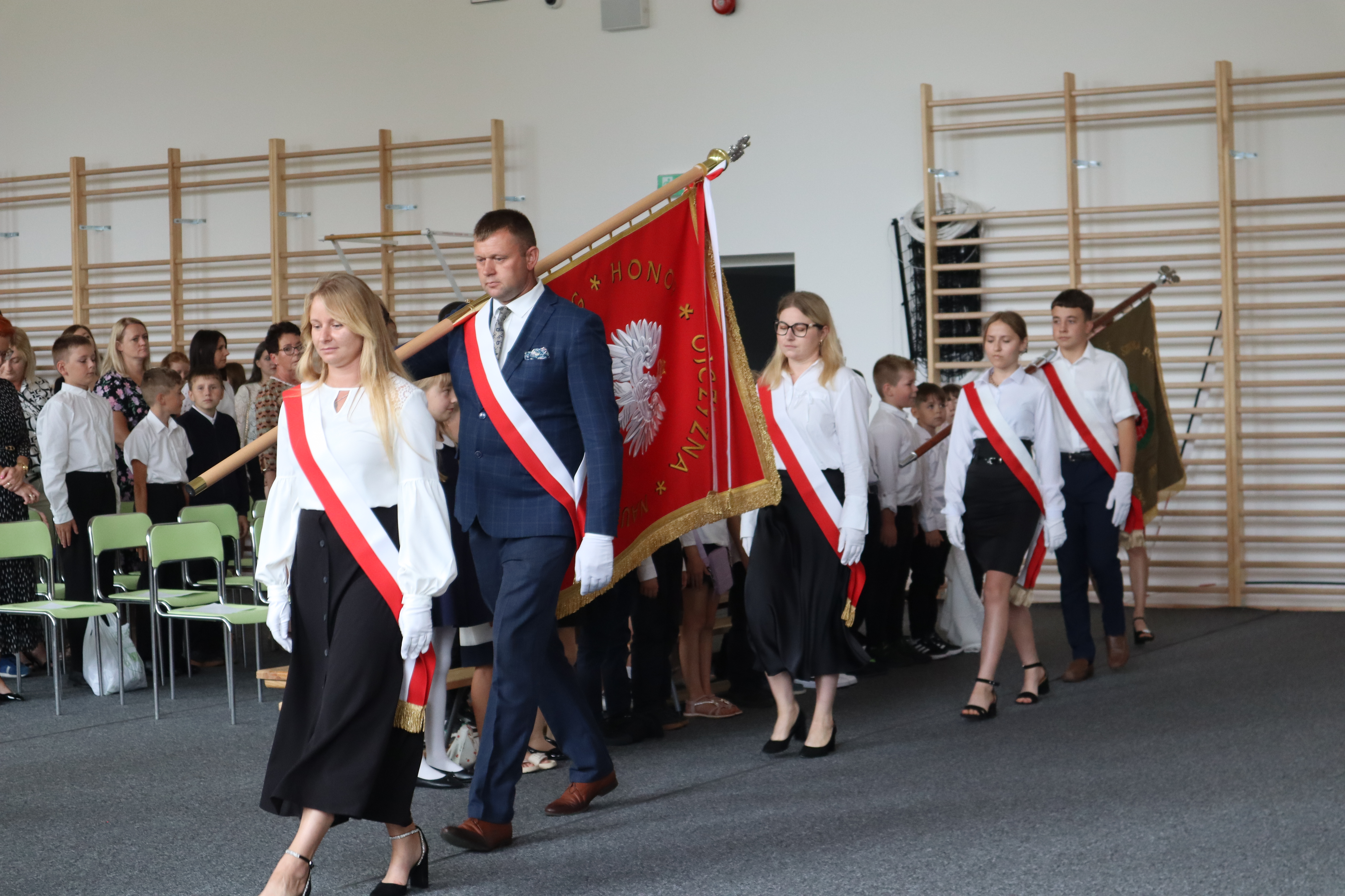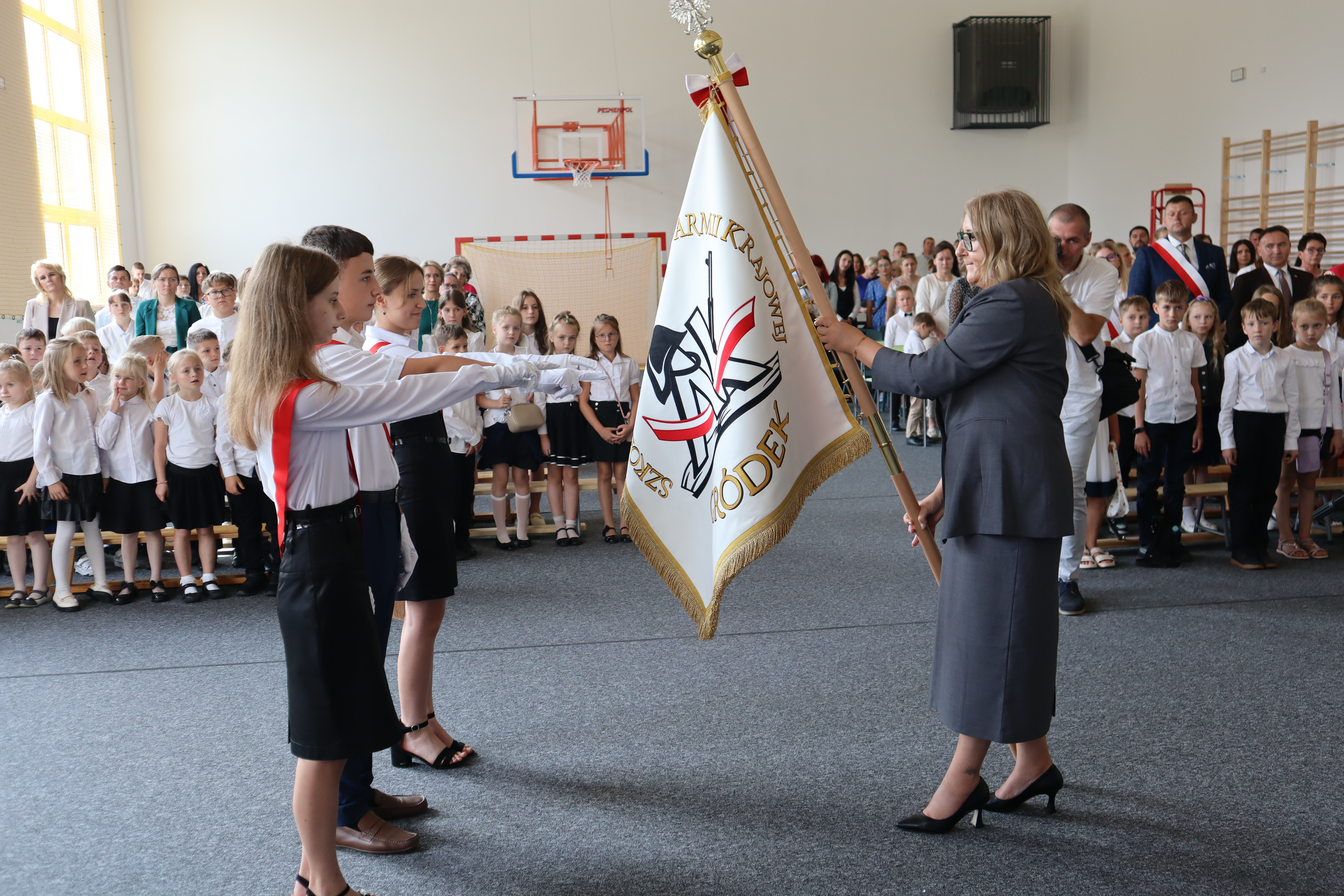 Szczególne podziękowania kierujemy w stronę Wójta Gminy Grybów Pana Jacka Migacza oraz Pani Sołtys Józefy Krok, którzy byli dzisiaj razem z nami w tym historycznym momencie. Wyrazy wdzięczności składamy również Pani Dyrektor Szkoły, Nauczycielom, Pracownikom administracji i obsługi, Rodzicom oraz wszystkim, którzy przyczynili się do otwarcia nowego budynku szkoły. Mamy nadzieję, że ten nowy czas, który właśnie się zaczyna, będzie dla Nas wszystkich okresem pełnym inspiracji, sukcesów i niezapomnianych chwil.
