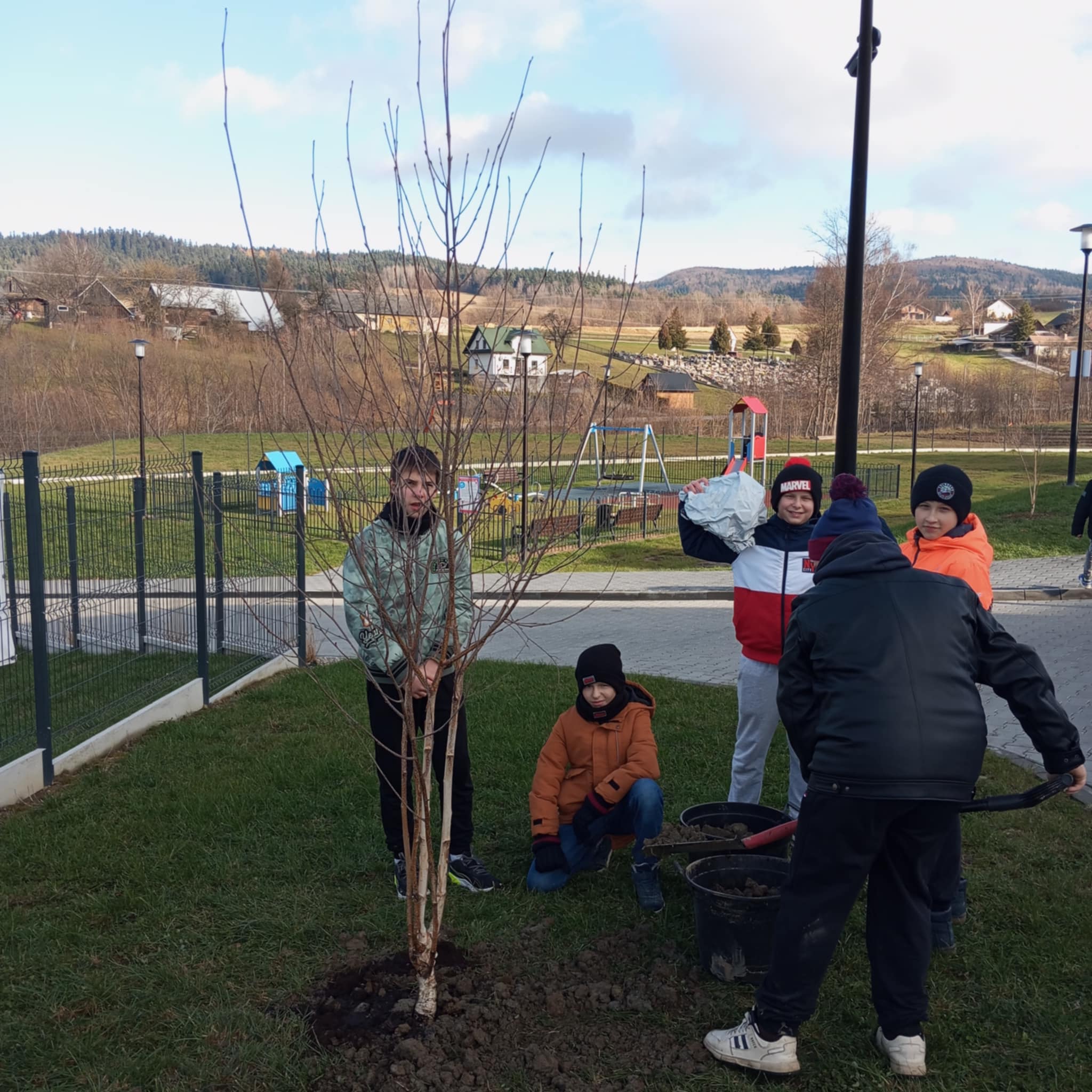 W ramach projektu „Z ekologią na Ty” sadzimy drzewa wokół naszej nowej Szkoły, aby zadbać o środowisko oraz stworzyć piękne i przyjazne miejsce dla wszystkich.