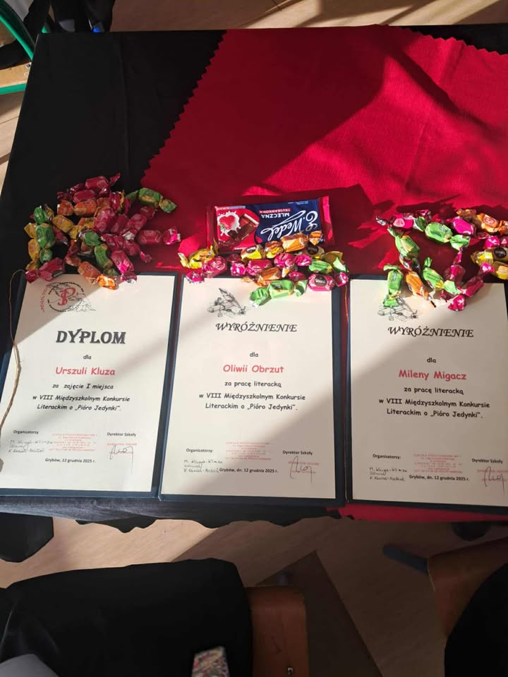 Wczoraj tj. 12 grudnia 2025 r. w Szkole Podstawowej nr 1 w Grybowie odbyło się uroczyste rozstrzygnięcie Konkursu oraz wręczenie nagród, podczas którego doceniono najciekawsze prace literackie młodych autorów.