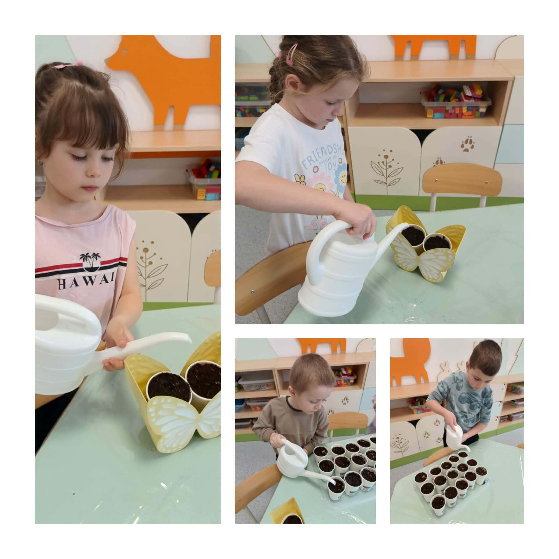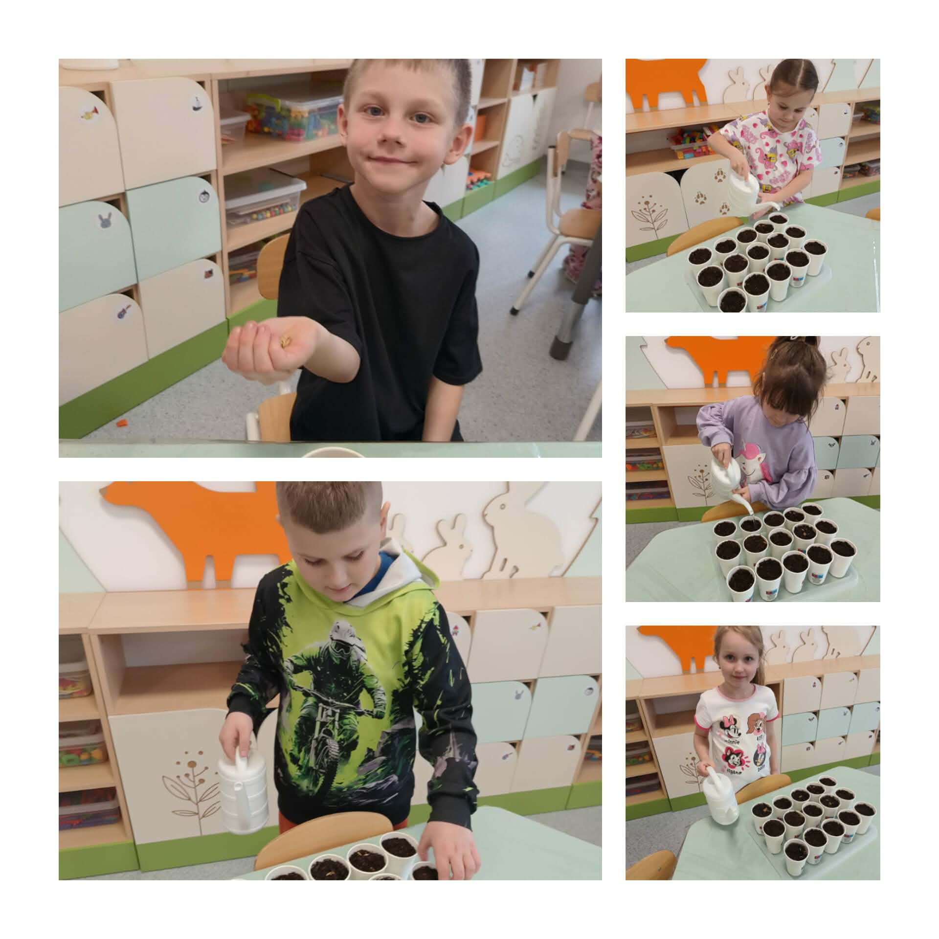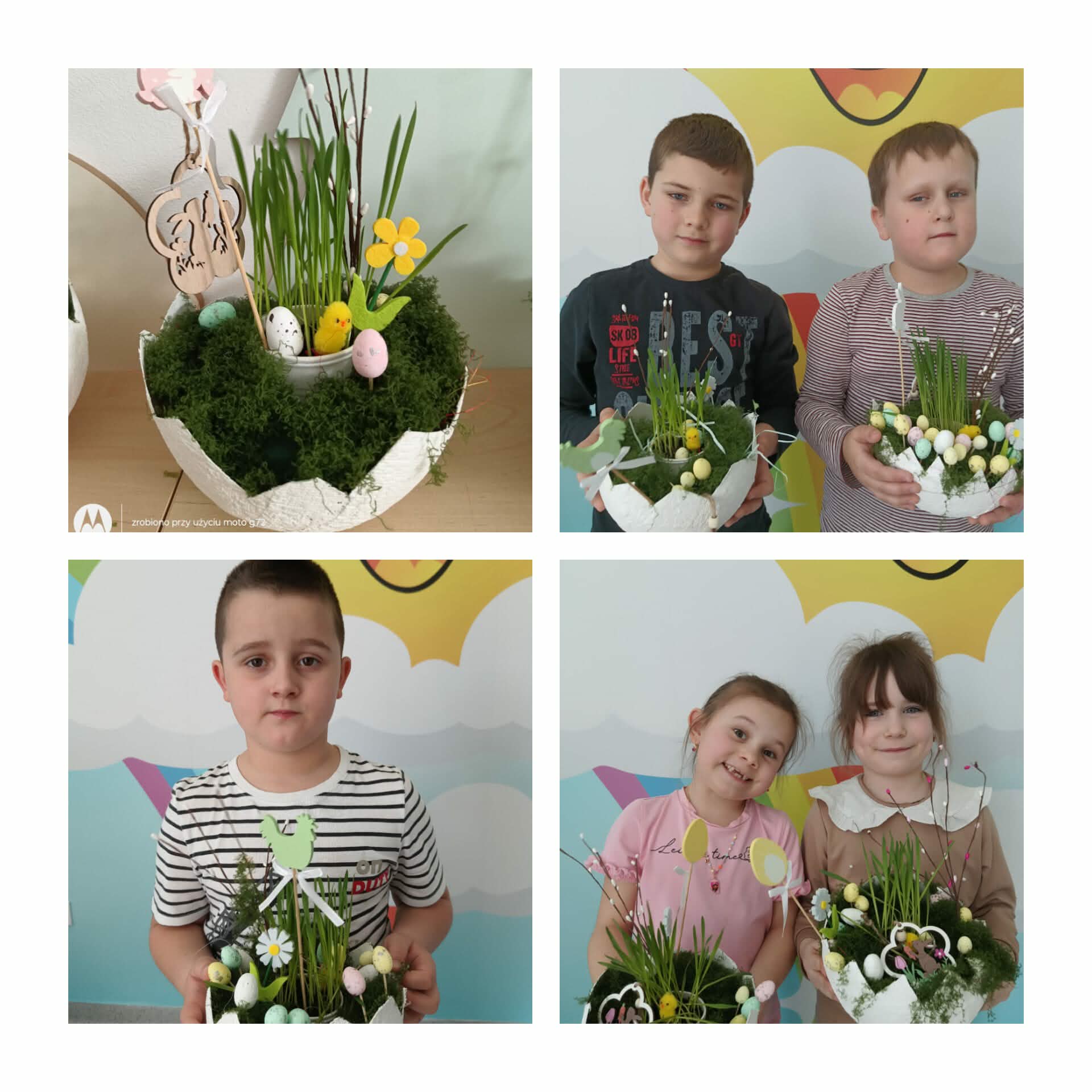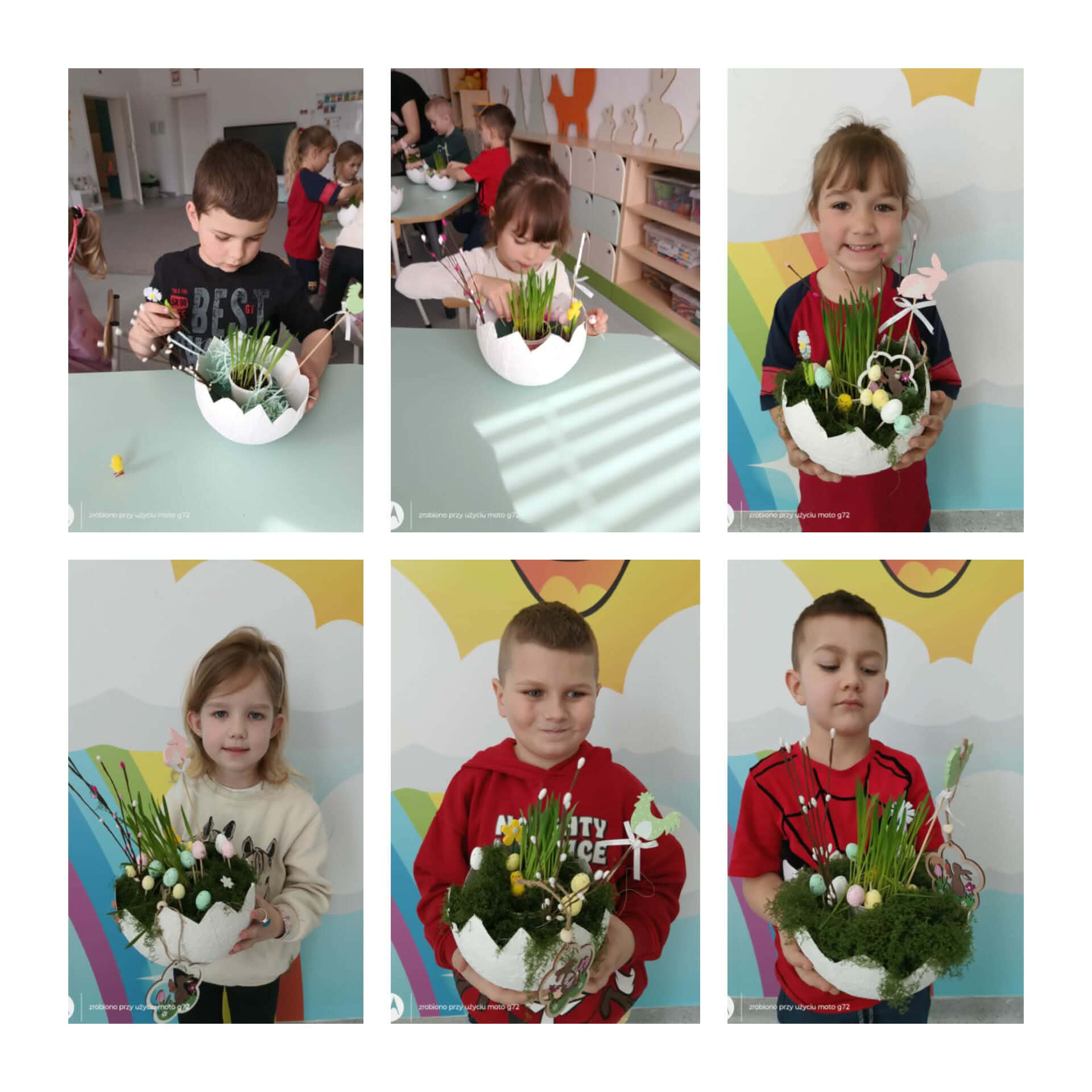 W naszej zerówce zrobiło się bardzo kolorowo i wiosennie! A to wszystko za sprawą wielkanocnych stroików, które dzieci przygotowały z ogromnym zaangażowaniem… bo przecież święta tuż, tuż! Powstały przepiękne, własnoręcznie wykonane stroiki pełne barw i ciekawych pomysłów. Nie zabrakło w nich owsa, który dzieci zasiały już wcześniej i który tak pięknie wyrósł, dodając pracom prawdziwie wiosennego charakteru!