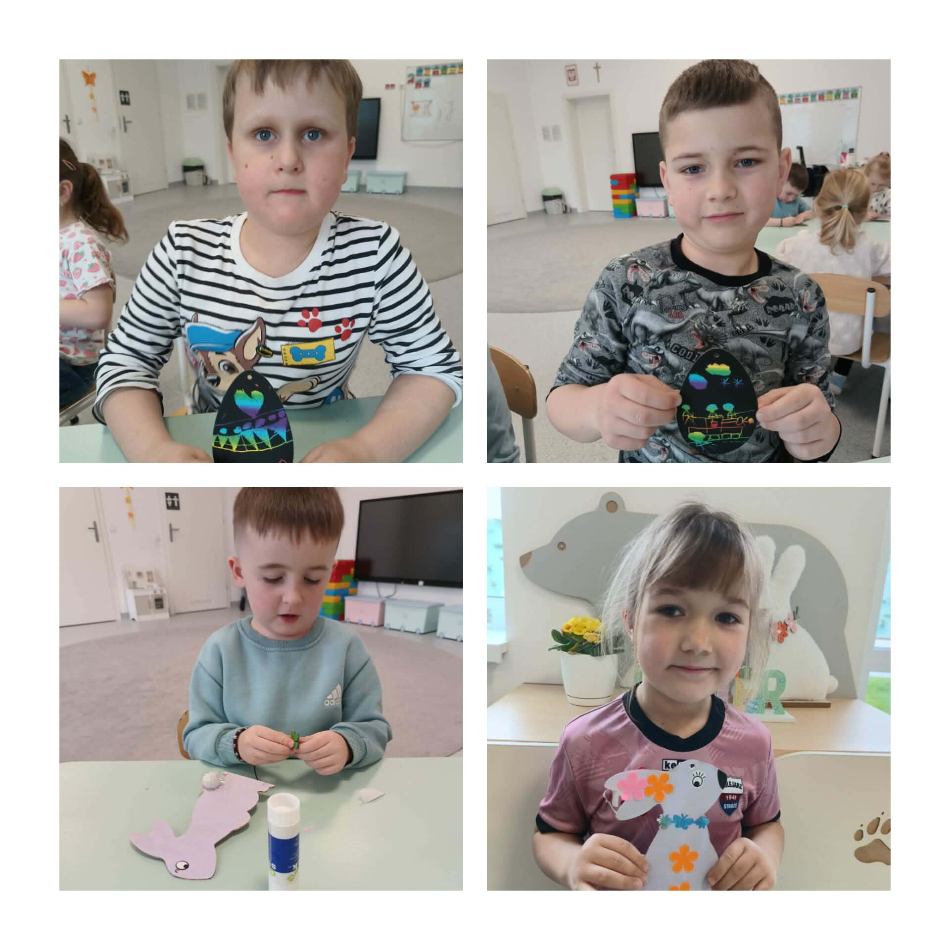 W tym tygodniu w grupie przedszkolnej oraz w klasach 1-3 panowała prawdziwie świąteczna atmosfera! Wszyscy z ogromnym zaangażowaniem przygotowywali piękne dekoracje wielkanocne, które ozdobiły sale i wprowadziły wszystkich w radosny nastrój. Nie zabrakło także ciekawych rozmów o tradycjach i znaczeniu Świąt Wielkanocnych. Jednym z najsmaczniejszych momentów była praca nad przygotowaniem pysznej sałatki wielkanocnej - drugoklasiści spisali się znakomicie, a efekt ich pracy został zjedzony z wielkim apetytem i uśmiechem!
