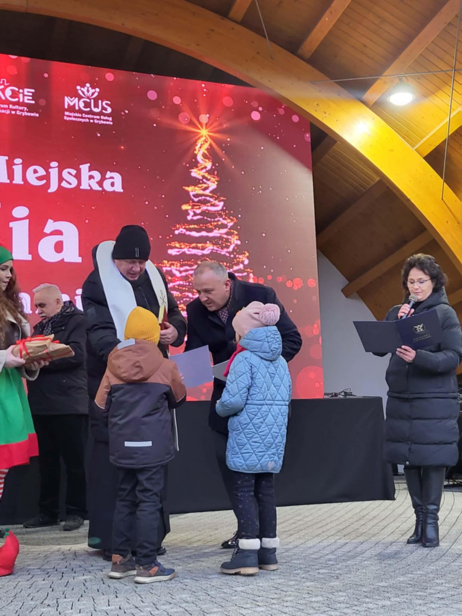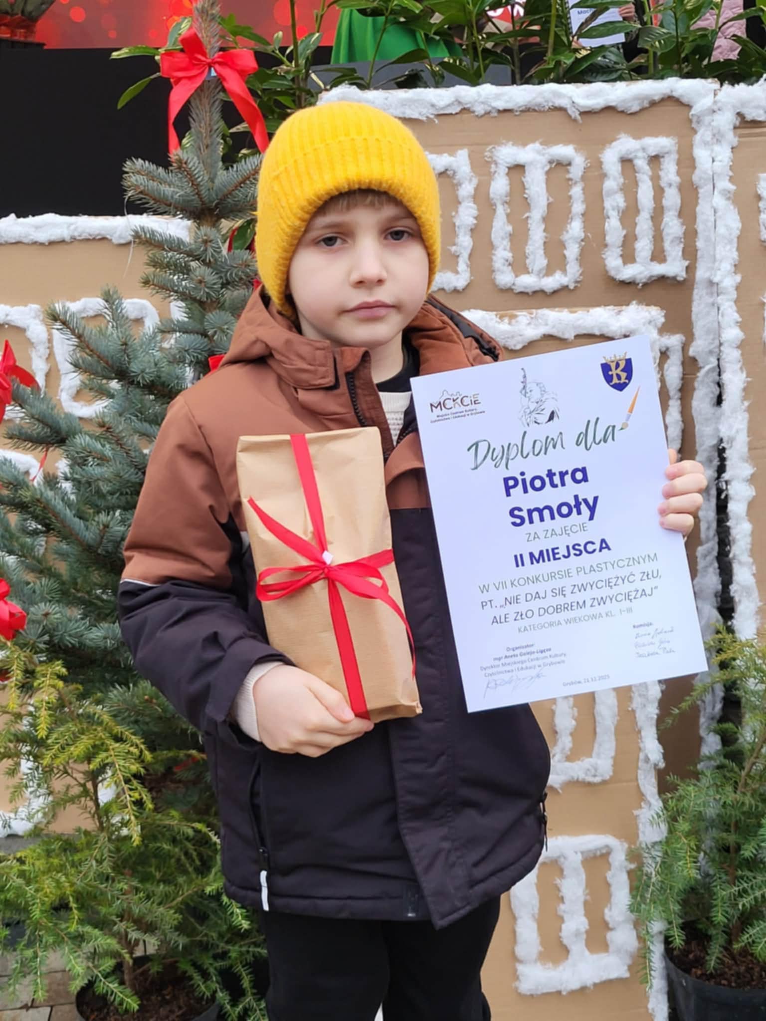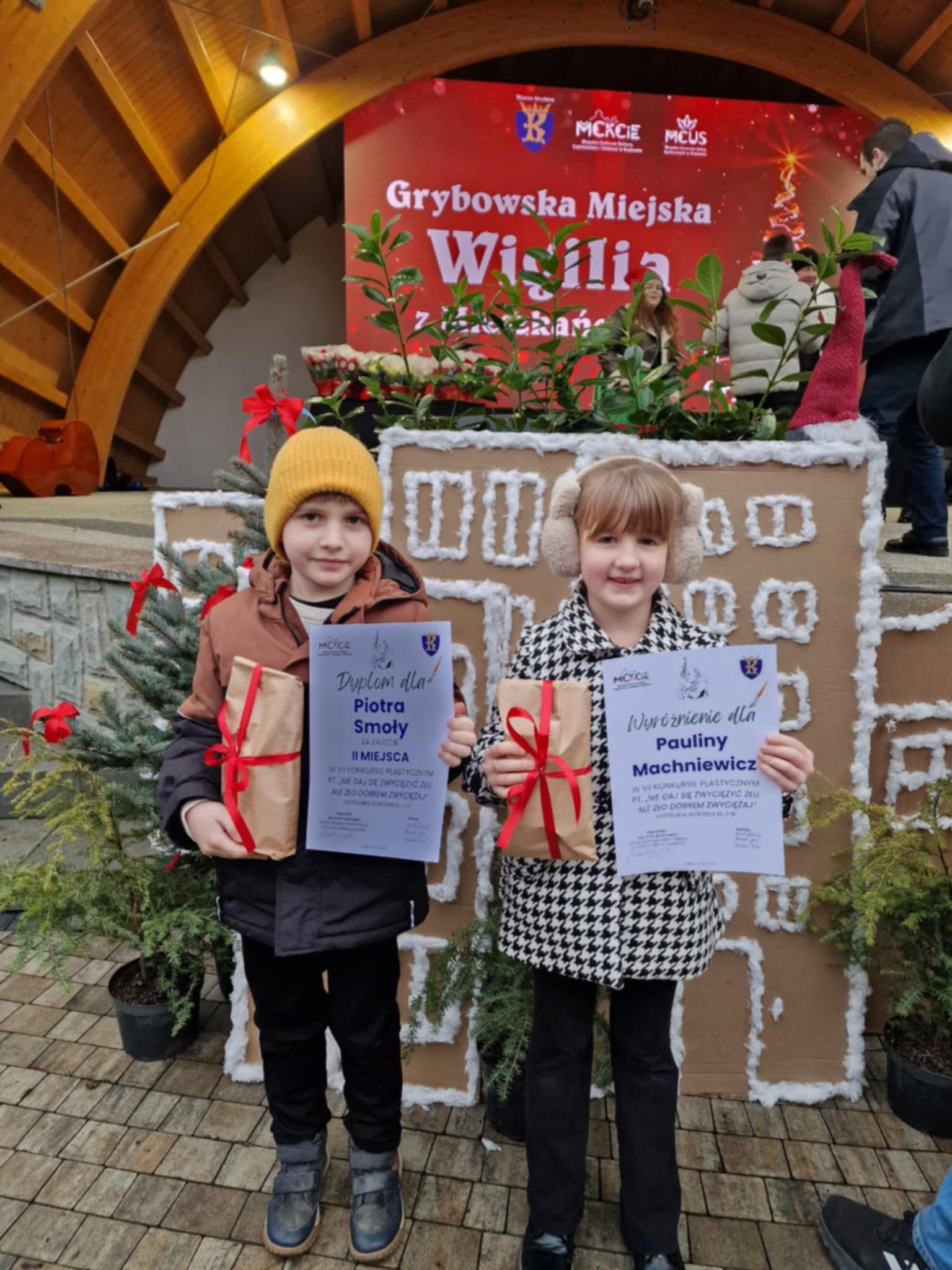 Podczas spotkania wigilijnego, które odbyło się dzisiaj, w amfiteatrze w Grybowie, miało miejsce uroczyste wręczenie nagród w konkursie pt. „Nie daj się zwyciężyć złu, ale zło dobrem zwyciężaj”, organizowanym przez MCKCiE w Grybowie.