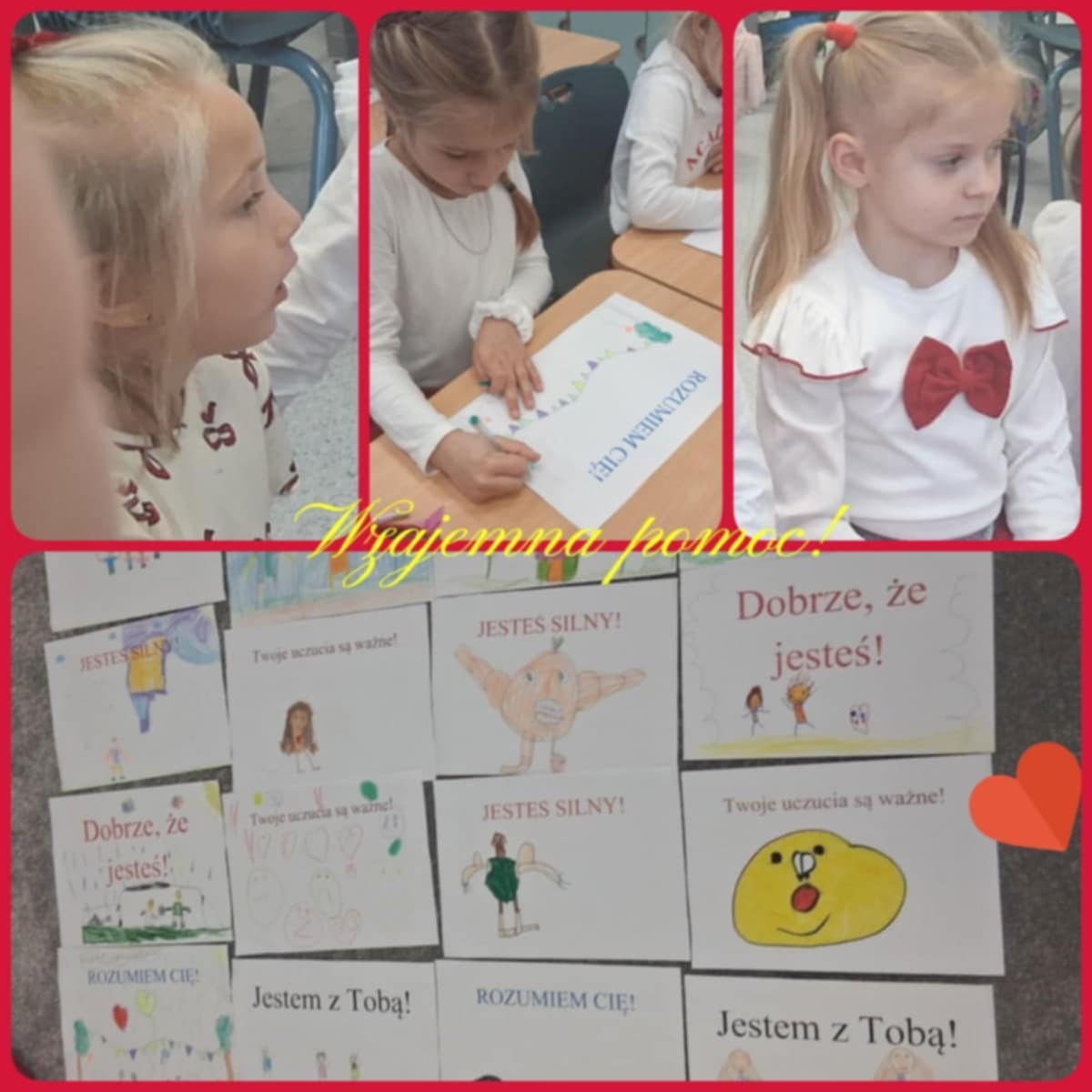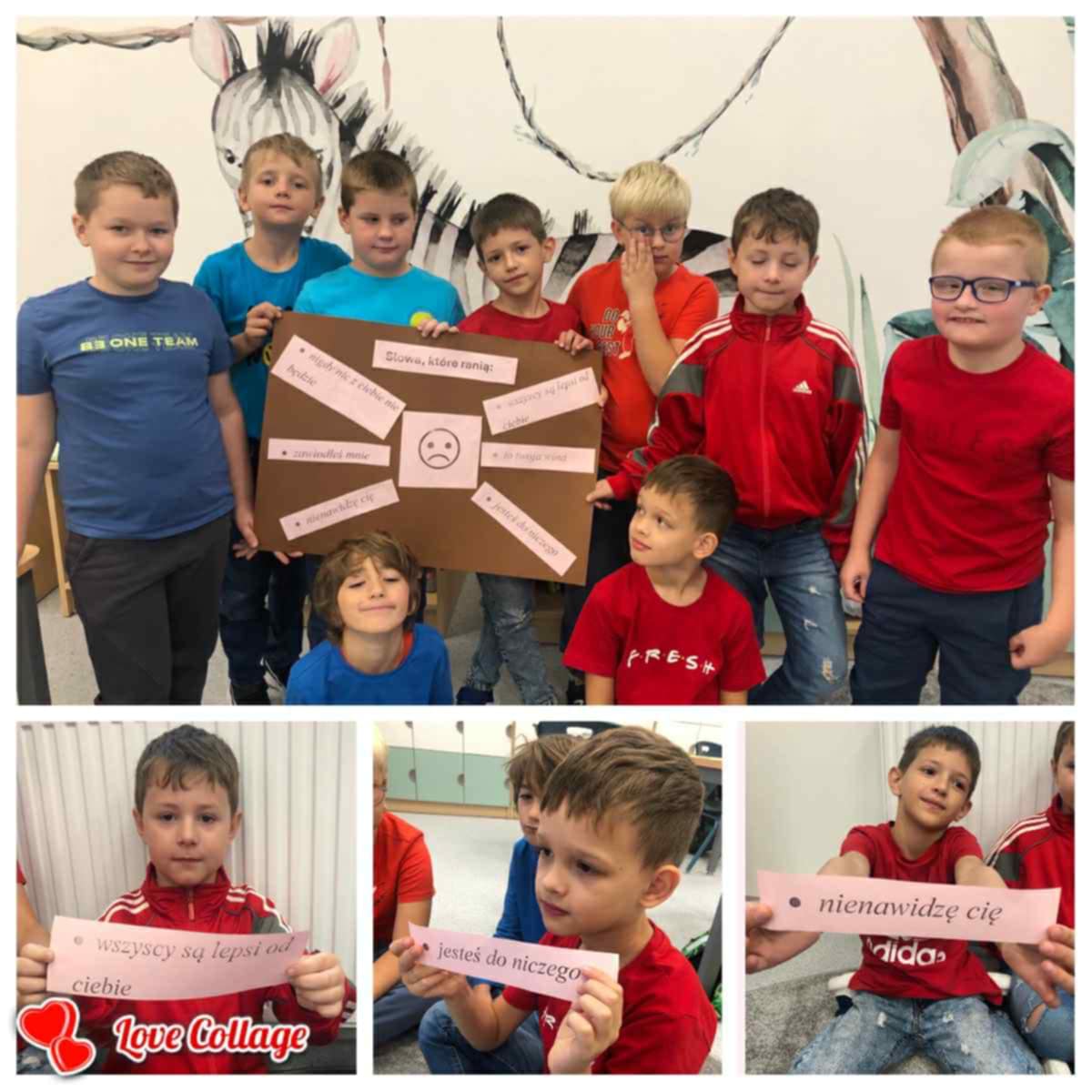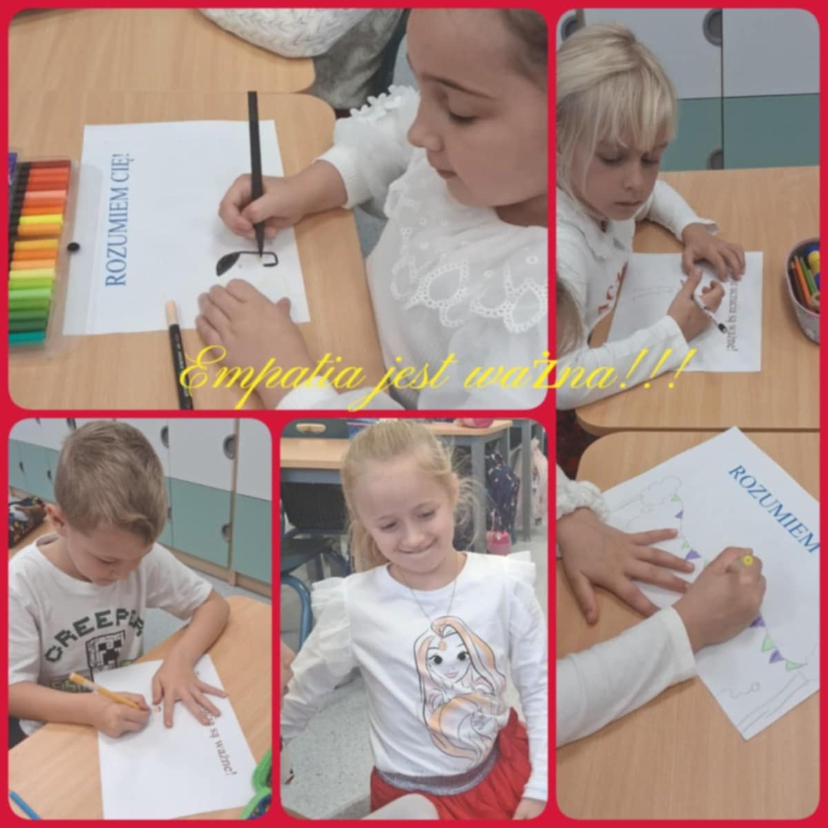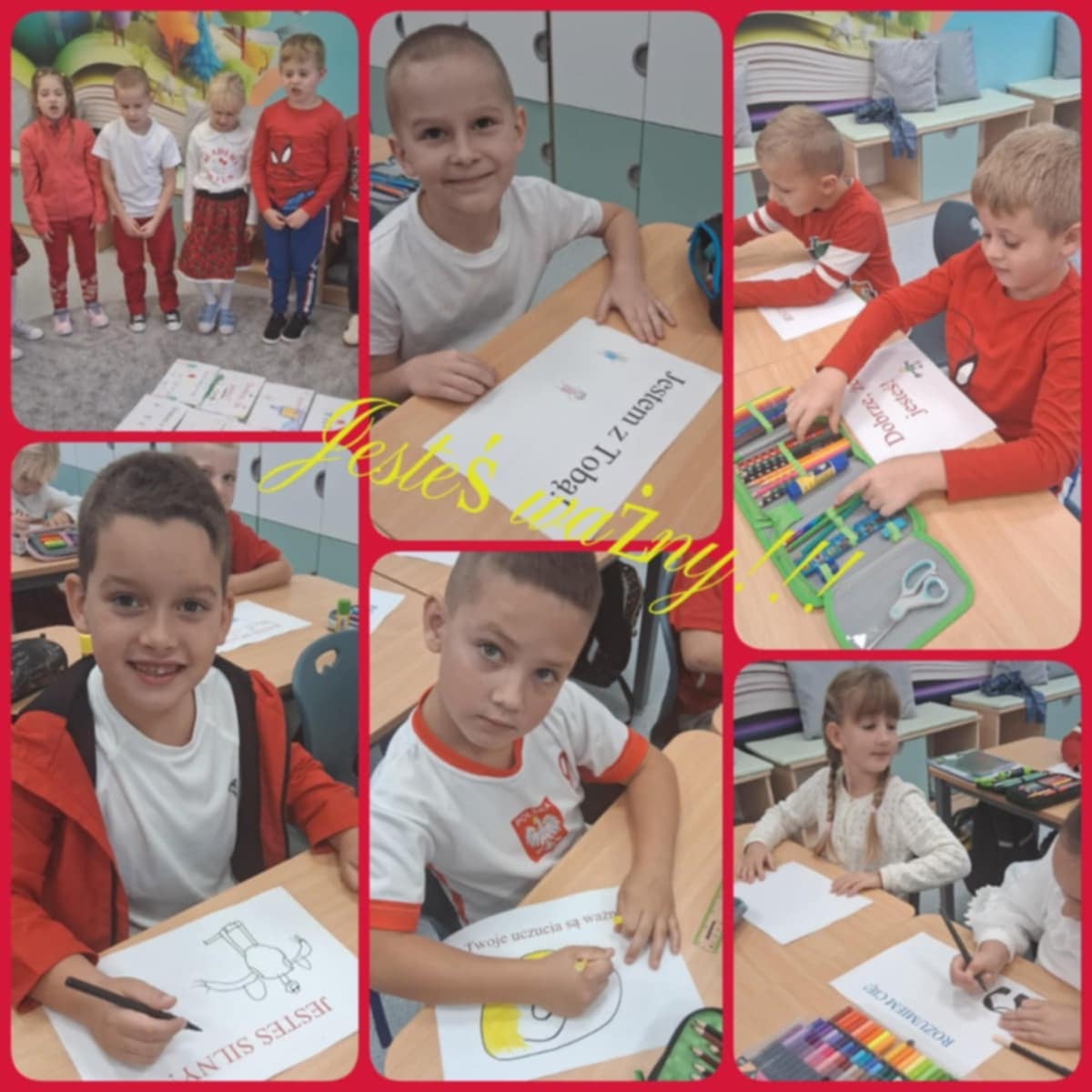Dzisiaj w naszej Szkole odbyły się kolejne zajęcia poświęcone przeciwdziałaniu przemocy rówieśniczej. Uczniowie czytali krótkie teksty poruszające temat szacunku, empatii i przyjaźni, a następnie rozmawiali o tym, jak ważne jest wspieranie się nawzajem i reagowanie na trudne sytuacje. Dodatkowo dzieci wykonywały plakaty, na których pokazały, jak można mówić „STOP” przemocy i budować bezpieczną, przyjazną atmosferę w Szkole.